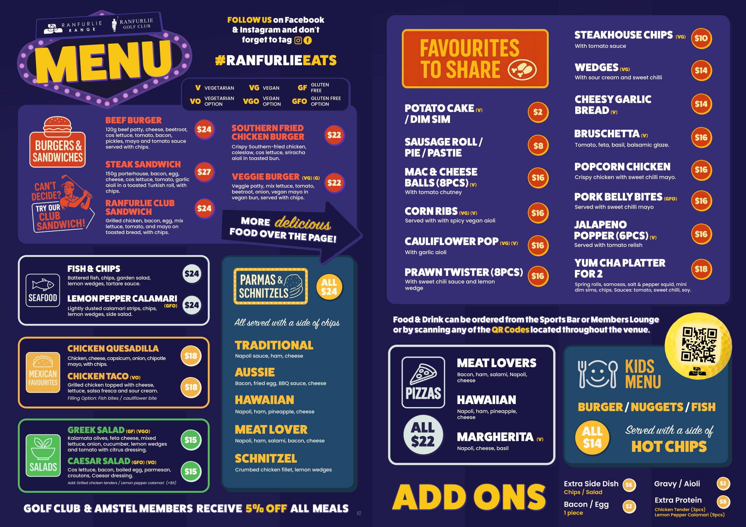 We offer a wide range of delicious items on our Sports Bar menu, available 7 days a week!